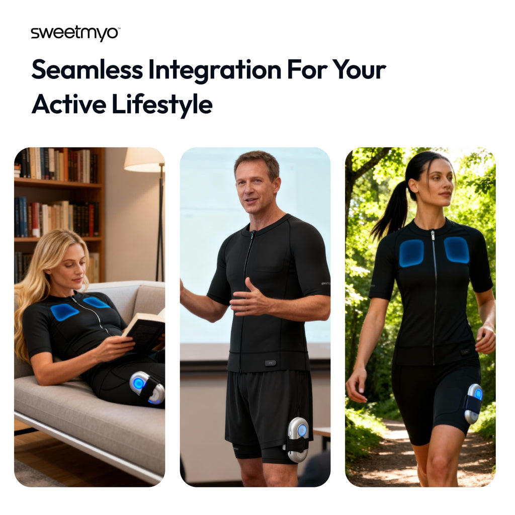 Just 20 minutes a day, for results that feel like HIIT without the hassle. No pressure. No rush. Sit, Wear, Shaped. Sweetmyo ushers in a new era of effortless deep muscle activation, powered by FDA-registered EMS tech.